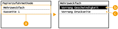 Verfügbares Papier), gilt für die Papierzufuhr stattdessen die Einstellung <Vorrang Geschwindigkeit>. In diesem Fall müssen Sie das Papier so einlegen, als ob Sie <Vorrang Geschwindigkeit> ausgewählt hätten (