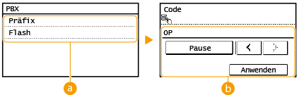 Geben Sie mit den Zahlentasten den Präfixcode ein, tippen Sie auf <Pause> und tippen Sie dann auf <Anwenden>. Wenn Sie keine Pause einfügen, wird der Präfixcode nicht gespeichert.
