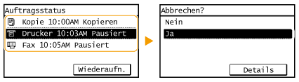 Abbrechen über Remote UISie können den Druckvorgang über die Seite [Auftragsstatus] von Remote UI abbrechen: Anzeigen des aktuellen Status von Druckdokumenten