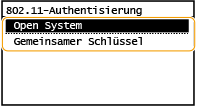 Beim Herstellen der Verbindung zu einem Wireless LAN kommt es am Gerät zu einem Authentisierungsfehler, wenn am Wireless LAN-Router die Authentisierung über einen gemeinsamen Schlüssel eingestellt ist. In diesem Fall ändert das Gerät die Einstellung automatisch in <Gemeinsamer Schlüssel> und versucht erneut, eine Verbindung herzustellen.