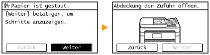 ), um einfache Lösungen anzuzeigen. Wenn die Schritte im Display schwer zu verstehen sind, schlagen Sie unter den folgenden Abschnitten nach, um den Papierstau zu beheben.