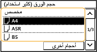 إذا لم يتم عرض حجم الورق الذي يتم تحميله، فحدد <أحجام أخرى>.