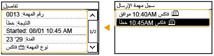 عندما يتم ضبط <عرض سجل المهمة> على <إيقاف>، فإنه لا يمكنك التحقق من سجلات الاتصال. <عرض سجل المهمة>