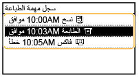 حدد <سجل مهمة الطباعة> وحدد المستند الذي ترغب في التحقق من سجله.