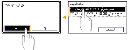 فقد تم مسح المستندات الأصلية ضوئيًا وفي انتظار معالجتها. حدد المستند المطلوب إلغاؤه، وحدد <نعم>.