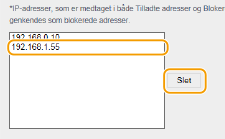 Indtast IP-adressen (eller IP-adresseområdet) i tekstfeltet [Adresse til registrering], og klik på [Tilføj].