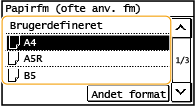 Hvis det ilagte papirformat ikke vises, skal du vælge <Andet format>.