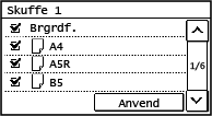 Fjern afkrydsningsfelterne for de papirformater, du ikke vil have vist.