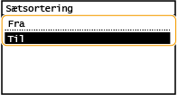 Når du forbereder flere kopier af originaler med flere sider, skal du indstille <Sætsortering> til <Til> for at få sætsortering af kopier i fortløbende siderækkefølge. Denne funktion er nyttig ved forberedelse af materiale til møder eller præsentationer.