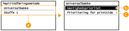 Tilgængeligt papir), anvendes <Hastighedsprioritet> for papirkilden i stedet. I dette tilfælde skal du ilægge papiret på samme måde, som når <Hastighedsprioritet> er valgt (