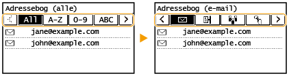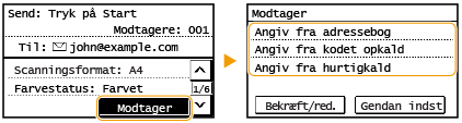Med adressebogen kan du angive en destination ved at vælge fra en liste over registrerede destinationer eller ved at søge efter navn for destinationer med modtagernavne.