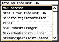 Vælg <Informationer om trådløst LAN>.