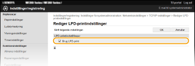 Markér afkrydsningsfeltet for at udskrive via LPD. Hvis du ikke bruger LPD-udskrivning, skal du fjerne markeringen i afkrydsningsfeltet. [Brug RAW-print]