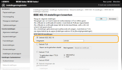 Schakel het selectievakje [Gebruik IEEE 802.1X] in en typ de aanmeldingsnaam in het vak [Inlognaam].