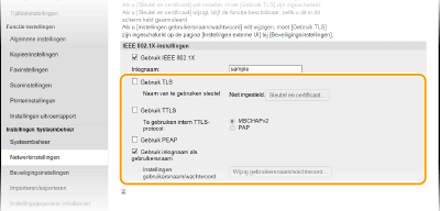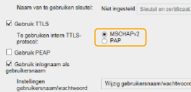 Schakel het selectievakje [Gebruik TTLS] of [Gebruik PEAP] in.