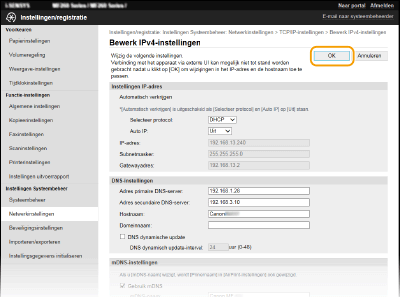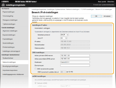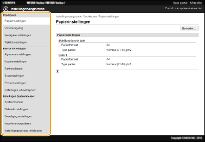 U kunt verschillende instellingen van het apparaat wijzigen met de externe UI. De meeste instellingen kunnen ook via het bedieningspaneel van het apparaat worden gewijzigd, maar sommige instellingen kunt u alleen wijzigen via de externe UI. Dit gedeelte beschrijft de basisprocedure voor het veranderen van de instelling van het apparaat met behulp van de externe UI.
