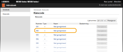 Klik op de tekstlink onder [Nummer], [Type], of [Naam] voor een item genaamd "Niet geregistreerd".