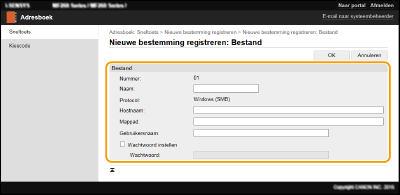 U kunt de computer gebruiken om bestemmingen in het adresboek van het apparaat te registreren en informatie van geregistreerde bestemmingen te bewerken. Geef hier de gedeelde map als bestemming op.