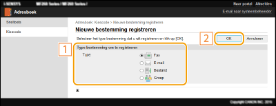 Selecteer [Type bestemming om te registreren] en klik op [OK].