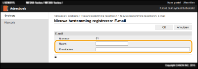 Voer het e-mailadres van de bestemming in.
