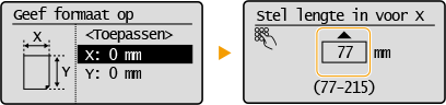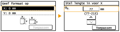 Geef de lengte van de <X>-zijde en de <Y>-zijde op.