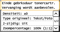 <Einde gebrksduur tonercartr. Vervanging wordt aanbevolen.>/<Eind gebr. tonercart. Vervanging aanbevolen.>