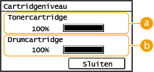 De weergegeven resterende hoeveelheid in de tonercartridge of de drumcartridge kan uitsluitend als schatting worden gezien en kan verschillen van de daadwerkelijk resterende hoeveelheid.