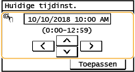 Selecteer een waarde voor <Tijdzone> voordat u de huidige datum en tijd gaat instellen. Als u de waarde voor <Tijdzone> wijzigt, worden de huidige datum en tijd automatisch aangepast.