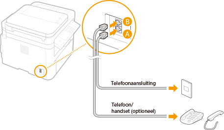 Als u een telefoon, antwoordapparaat of optionele handset gebruikt, moet u de aansluiting voor een externe telefoonaansluiting (