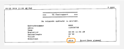 Het verzenden van een fax is mislukt omdat de machine van de ontvanger niet heeft gereageerd vanwege een bezette lijn of andere oorzaken.