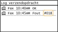 Als het afdrukken mislukt, u een fax of gescand document niet kunt verzenden of ontvangen of als er een andere fout optreedt, wordt die fout als een foutcode van drie cijfers weergegeven in een rapport of een bericht op het scherm <Statusmonitor>. Raadpleeg de volgende informatie om voor een foutcode mogelijke oorzaken en oplossingen weer te geven. Als u een foutrapport wilt afdrukken, leest u