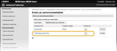 Avainta ja varmennetta ei voi poistaa, jos ne ovat käytössä, esimerkiksi kun "[TLS]" näkyy kohdassa [Avaimen käyttö]. Poista tällöin toiminto käytöstä tai vaihda avain ja varmenne ennen poistamista.