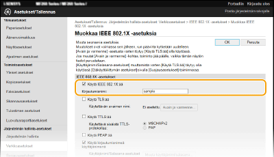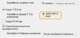 Valitse [Käytä TTLS:ää]- tai [Käytä PEAP:ää]-valintaruutu.