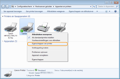 Napsauta tulostimen ajurikuvaketta hiiren kakkospainikkeella ja napsauta [Tulostimen ominaisuudet] tai [Ominaisuudet].