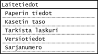 Näyttää laitteen tilan, esimerkiksi paperikoon tai väriainekasetissa jäljellä olevan väriaineen määrän.