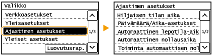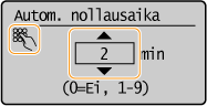 Voit vaihtaa näytön, joka näytetään automaattisesti, kun laite on käyttämättömänä määritetyn pituisen ajan: <Toiminta automaattisen nollauksen jälk.>