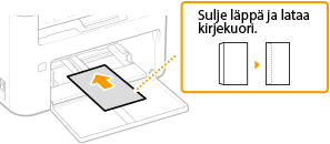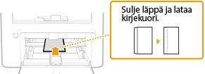 Tässä osassa kuvataan, miten kirjekuoret lisätään haluamassasi suunnassa, sekä toimenpiteet, jotka on tehtävä ennen kirjekuorien lisäämistä. Kuvaus yleisistä toimista, jotka on tehtävä lisättäessä kirjekuoria kasettiin, löytyy kohdasta Paperin lisääminen kasettiin tai Paperin lisääminen monitoimitasolle.