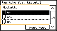 Jos lisätyn paperin kokoa ei näytetä, valitse <Muut koot>.