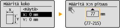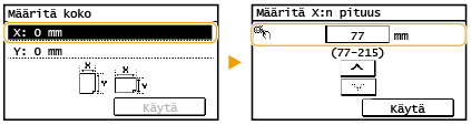 Määrittele <X>-sivun ja <Y>-sivun pituus.