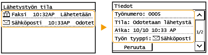 <OK> näytetään, kun asiakirjan lähetys onnistui, ja <Virhe> näytetään, kun asiakirjan lähetys epäonnistui, koska se peruutettiin tai tapahtui virhe.