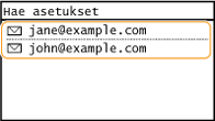 Voit valita vastaanottajan aiemmista vastaanottajista. Kun määrität aiemmin käytetyn vastaanottajan, laite asettaa samat skannausasetukset, esimerkiksi tummuuden, joita käytit viimeksi lähettäessäsi asiakirjoja tälle vastaanottajalle.