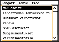 MAC-osoitteen ja langattoman LAN-verkon näyttäminen