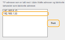 Angi IP-adressen (eller IP-adresseområdet) i tekstboksen [Adresse som skal lagres], og klikk på [Legg til].