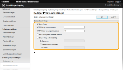 Merk av for [Bruk Proxy], og angi de nødvendige innstillingene.