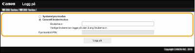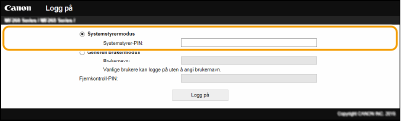 Skriv inn riktig PIN-kode i [Systemstyrer-PIN] for å logge på i Systemstyrermodus.