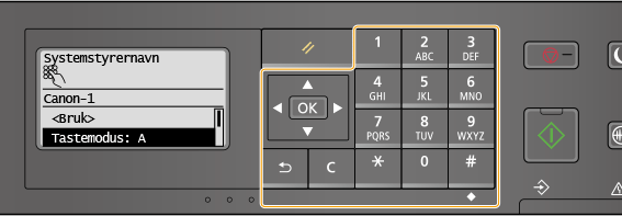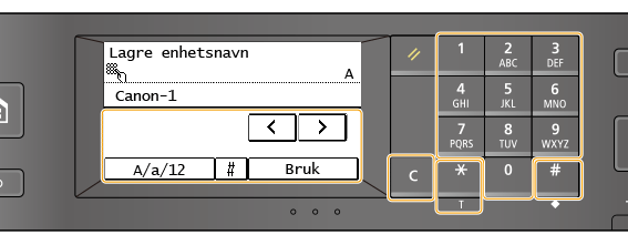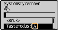 for å veksle type tegn som skrives inn. Gjeldende valgt type tegn er indikert av "A", "a" eller "12" for <Entry Mode>.