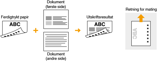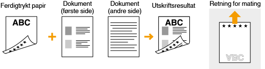 Denne delen beskriver hovedsakelig hvordan du legger inn ferdigtrykt papir med riktig side opp og retning. For en beskrivelse av den generelle prosedyren for å legge papir i skuffen, kan du se Legge i papir i skuffen eller Legge papir i multibrettet.