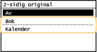 Velg <Bok> eller <Kalender>