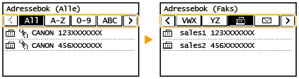 Hvis en mottaker velges fra <Adr. bok> på Hjem-skjermen, kan skjermbildet Grunnleggende funksjoner for faks, vises mens den valgte mottakeren fortsatt er angitt.