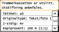 <Trommelkassetten er utslitt. Utskiftning anbefales.>/<Trom.kass. utslitt. Bytte anbefales.>